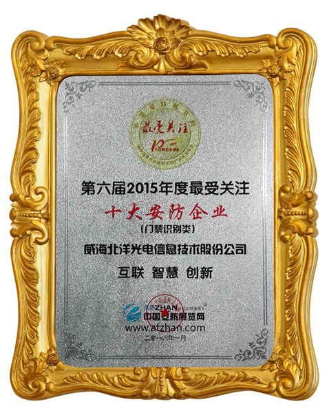 3月29日,在杭州舉辦的第六屆2015年度最受關(guān)注十大安防企業(yè)評(píng)選頒獎(jiǎng)盛典拉開(kāi)序幕,來(lái)自各省市領(lǐng)導(dǎo)、行業(yè)專(zhuān)家、特邀嘉賓、獲獎(jiǎng)企業(yè)代表、行業(yè)采購(gòu)商、媒體人士以及相關(guān)企業(yè)參會(huì)人員等200余人陸續(xù)簽到亮相現(xiàn)場(chǎng),威海北洋光電信息技術(shù)股份公司榮獲“門(mén)禁識(shí)別類(lèi)-第六屆2015年度最受關(guān)注十大安防企業(yè)”榮譽(yù)稱(chēng)號(hào)。
